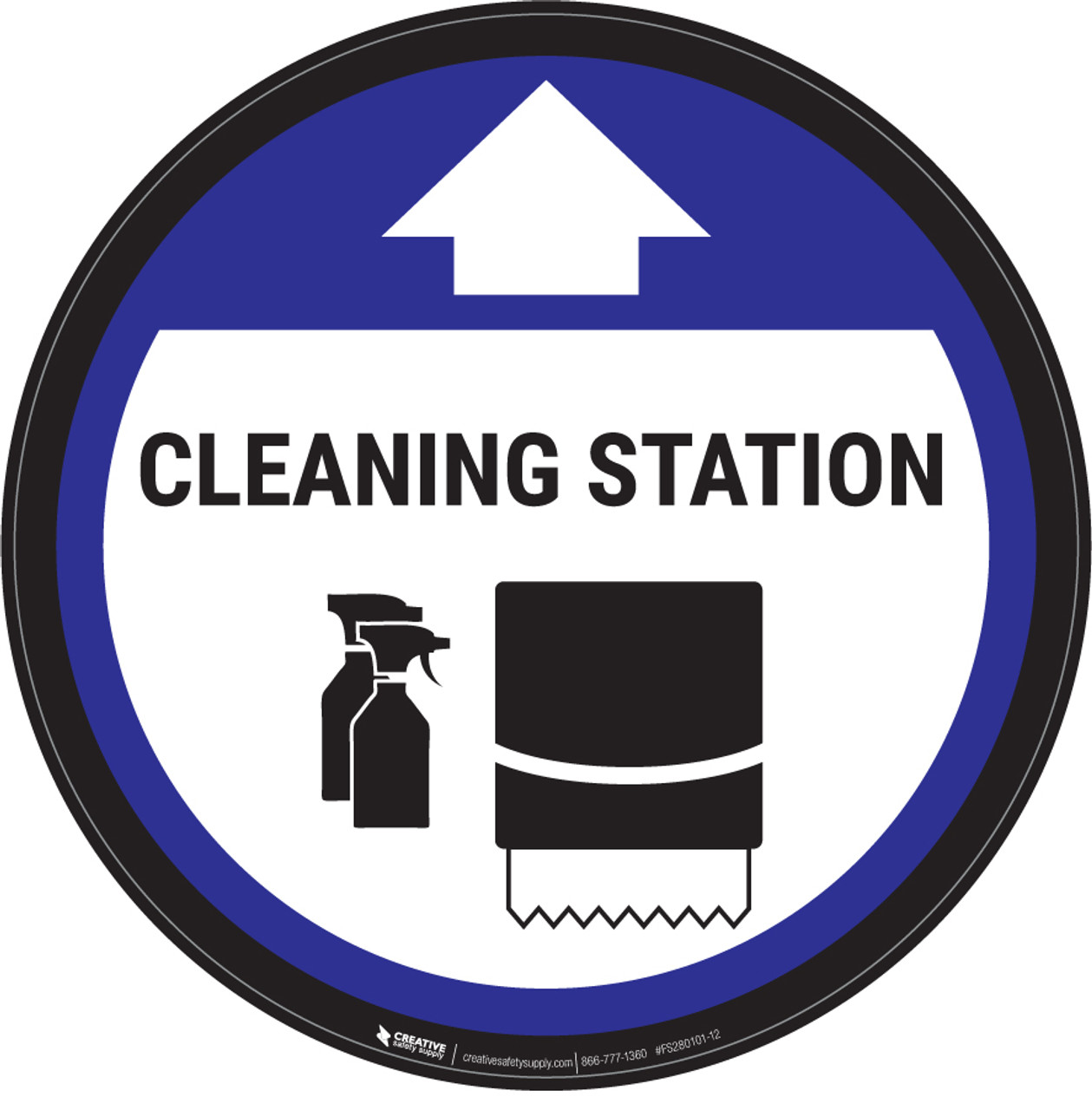 Cleaning Station Arrow With Icon Blue Circular Floor Sign 5s Today