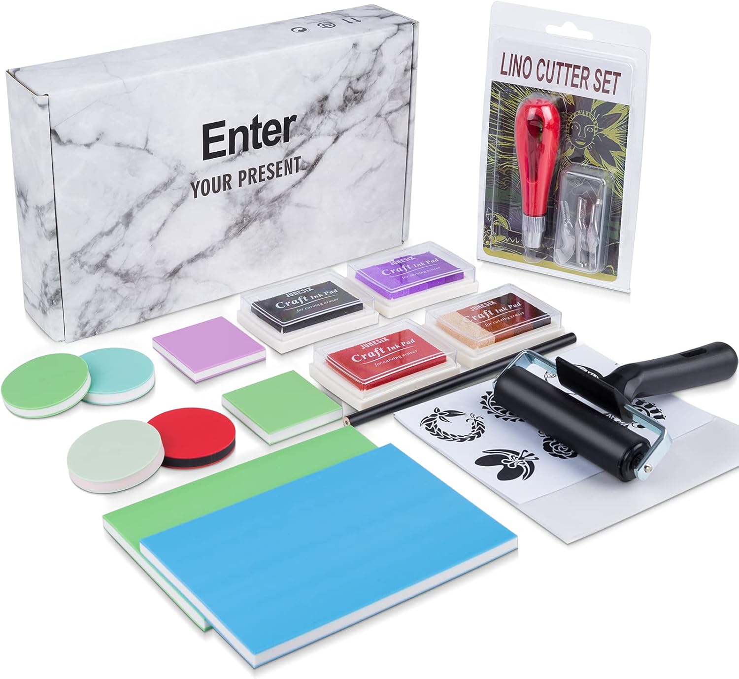 Buy Printmaking Starter Block Printing Rubber Stamp Making Kit Gift Box Includes Lino Handle And Cutter Cutter With 6 Cutting Blade Brayer Roller Rubber Stamp Tracing Paper Craft Ink Speedy Carve Online In Indonesia B08yd7rg6h